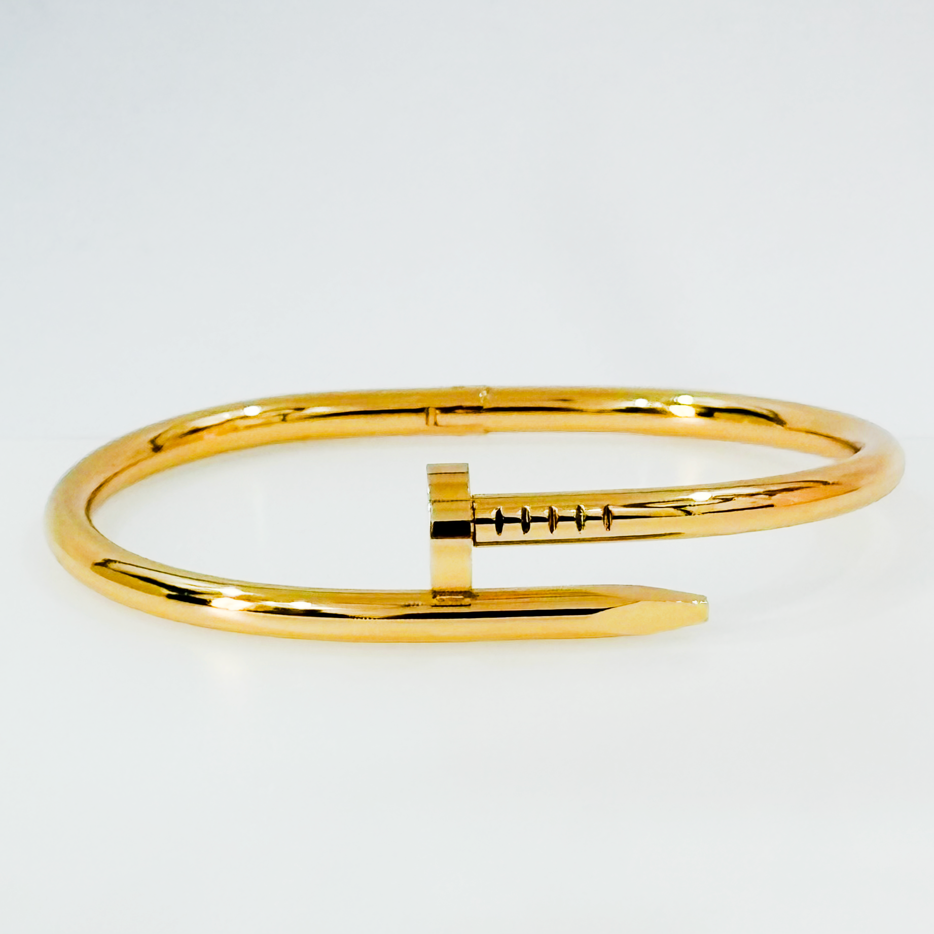 Reimagining a common nail into a symbol of high fashion, the Cartier Nail It Bracelet brings a rebellious edge to refined luxury. With its striking nail-inspired silhouette and flawless golden finish, this bracelet is a bold expression of strength, elegance, and individuality.